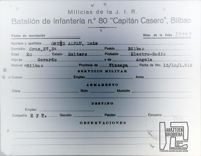 Ehun urte betetzeko atarian Luis Ortiz Alfauk (Bilbo,1916) gogotsu kontatzenditu bere bizitzako pasarteak. Familia errepublikazalean hazia 1936an matxinoak altxamendu militarra burutu eta laster batera prestu aurkeztu zen miliziekin bat egin eta “Izquierda Republica” alderdiaren “Capitan Casero” batailoiaren hastapenetan.