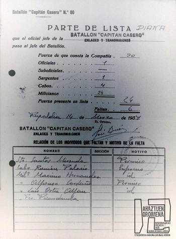 Bilboko Mujikako eskoletan batailoia eratu eta Arespalditzara abiatu ziren, ondoren neguan, Otxandioko erasoetan borrokatu eta bi hilabetez Intxortan egon ondoren Gernikara bidali zituzten atseden hartzera, bertan suertatu zen bonbardaketaren egunean, 1937ko apirilaren 26an. Hango ankerkeri eta drama guztia bizi ondoren, bereziki Bizkargi eta Artxandan (1937 maiatza-ekainean) izan zituen egoerarik latzenak.