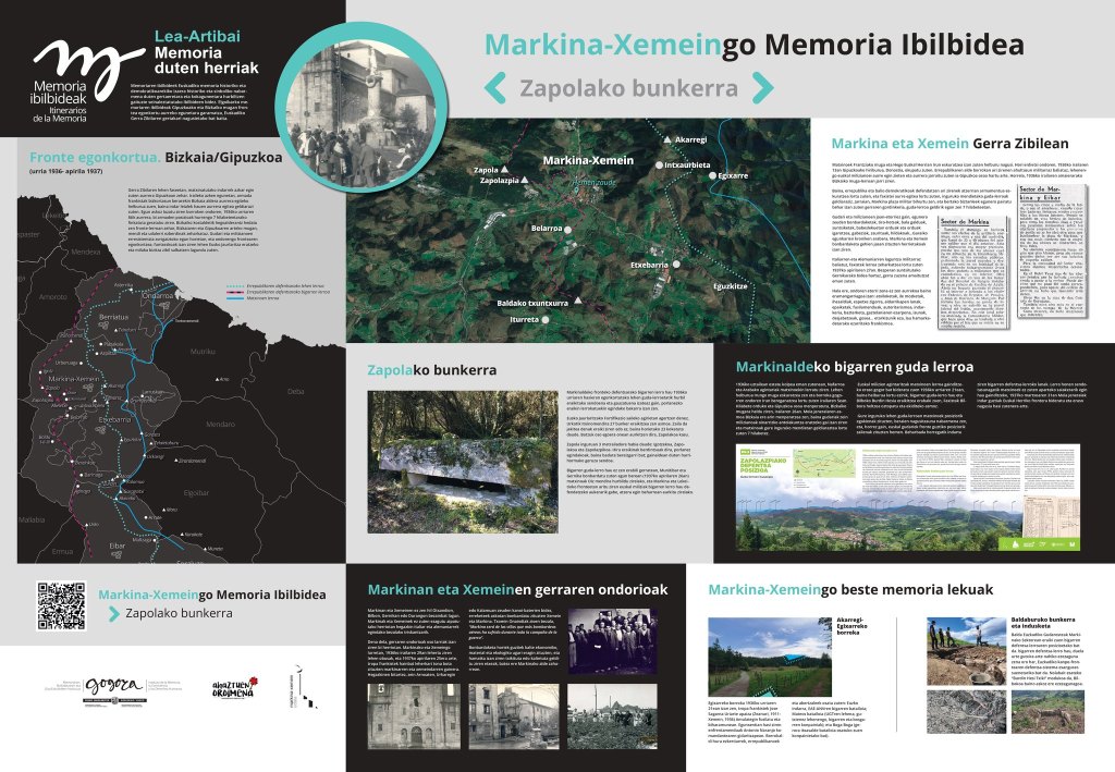 - Bizenta Mogel Parkea: Zapola inguruko bunkerraren inguruko zehaztapenekin batera (gune hau MX-2 Markina-Xemeingo bigarren guda lerroko memoria ibilbidean, kokatzen da) berau parte den bigarren guda lerroaren infografia jasotzen du; horrez gain, gerrak eragindako zenbait kalte eta informazio osagarri ere ikusgai dago.