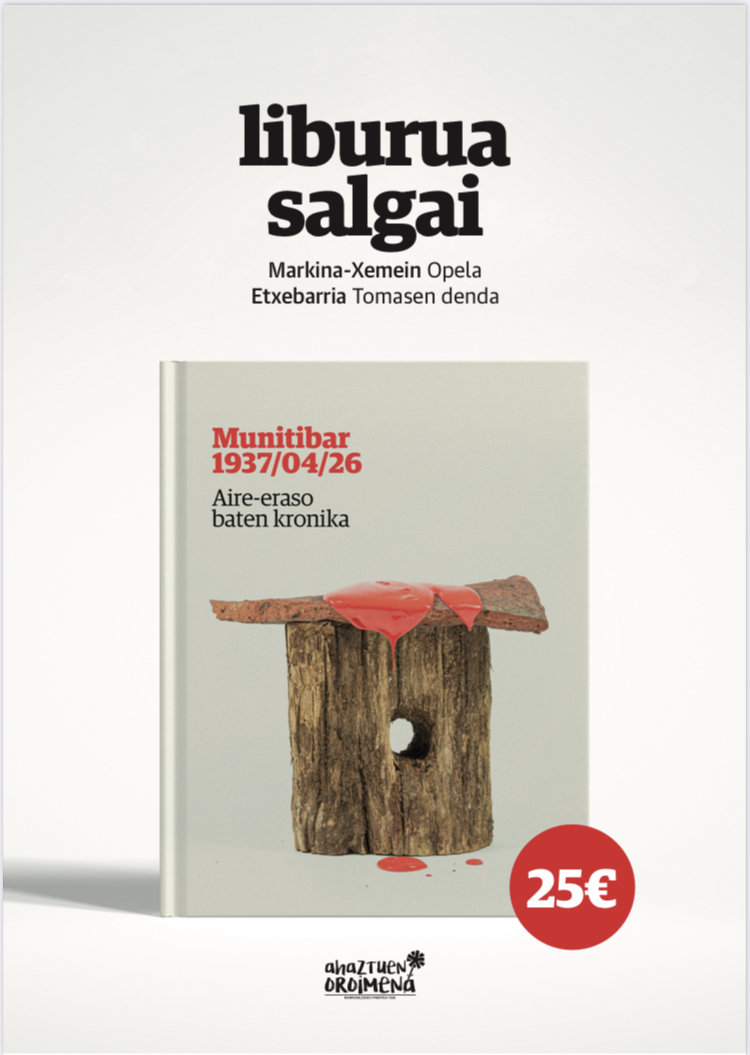 86.ak ekarri du oroimena eta erreparaziorako (beste) keinu kolektibo bat Munitibarrera. Aurtengo apirilaren 23an.Munitibar 1937/04/26 aire-eraso baten kronika liburua aurkeztu genuen, non argitarapen honek, egun hartan Munitibarren aurka egindako erasoa biltzen duen kronika idatzia jasotzen du.