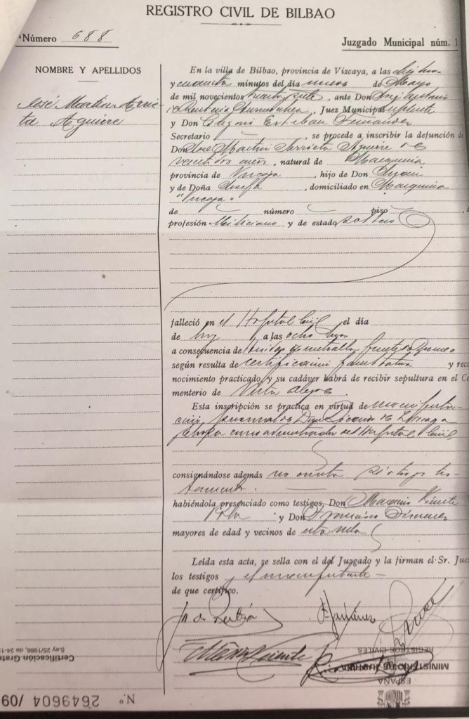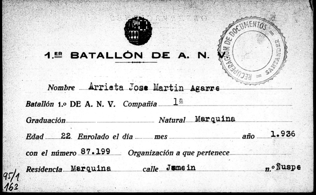 Esta entrada fue publicada en Etxebarria, Hildakoak-zaurituak y etiquetada como 1937 maiatza, Aranzadi, Bizkargi, etxebarria, Jimi Jimenez, Juan Guenaga Zelaia, Severo Guenaga Zelaia.