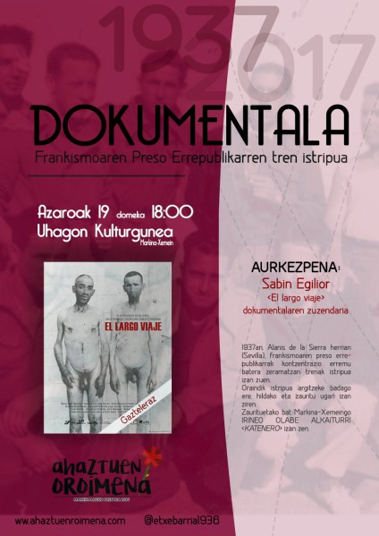 Gertaera honen 80.urtemuga beteko den egun berean, 2017ko azaroaren 19an, Uhagon Kultur Gunean “El Largo Viaje” dokumentala aurkeztuko dugu.